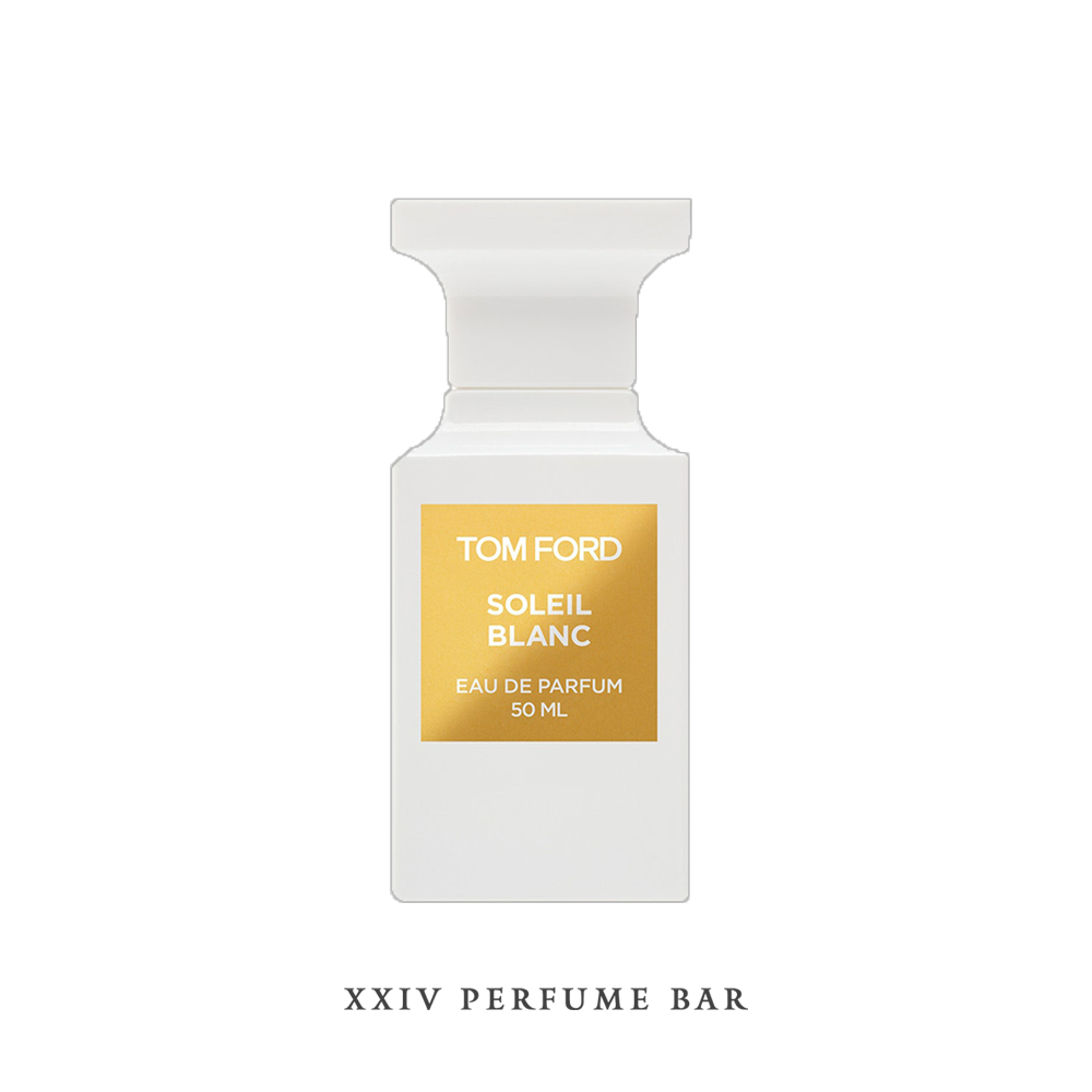 Tom Ford Soleil Blanc là mùi hương hoa mặt trời bất ngờ, oi bức và gây nghiện. Nó gợi lên những hòn đảo tư nhân nơi mùa hè kéo dài cả năm. Sáng tạo pha trộn riêng tư mới nhất của Tom Ford , một cách không khoa học thể hiện sự theo đuổi vô tận của mặt trời và sự sang trọng định nghĩa Tom Ford Soleil. Hương đầu của nước hoa unisex kết hợp hương vị cay của thảo quả và hạt tiêu hồng với một chút hương của quả hồ trăn và cam bergamot. Hoa gợi cảm của ylang ylang, hoa nhài Ai Cập và hoa huệ được đặt trong trái tim của hương thơm cho cường độ xác thịt. Benzoin một chất thảo dược có trong dầu hạnh nhân đắng, hổ phách, đậu tonka và nước cốt dừa tạo thành cơ sở sang trọng.